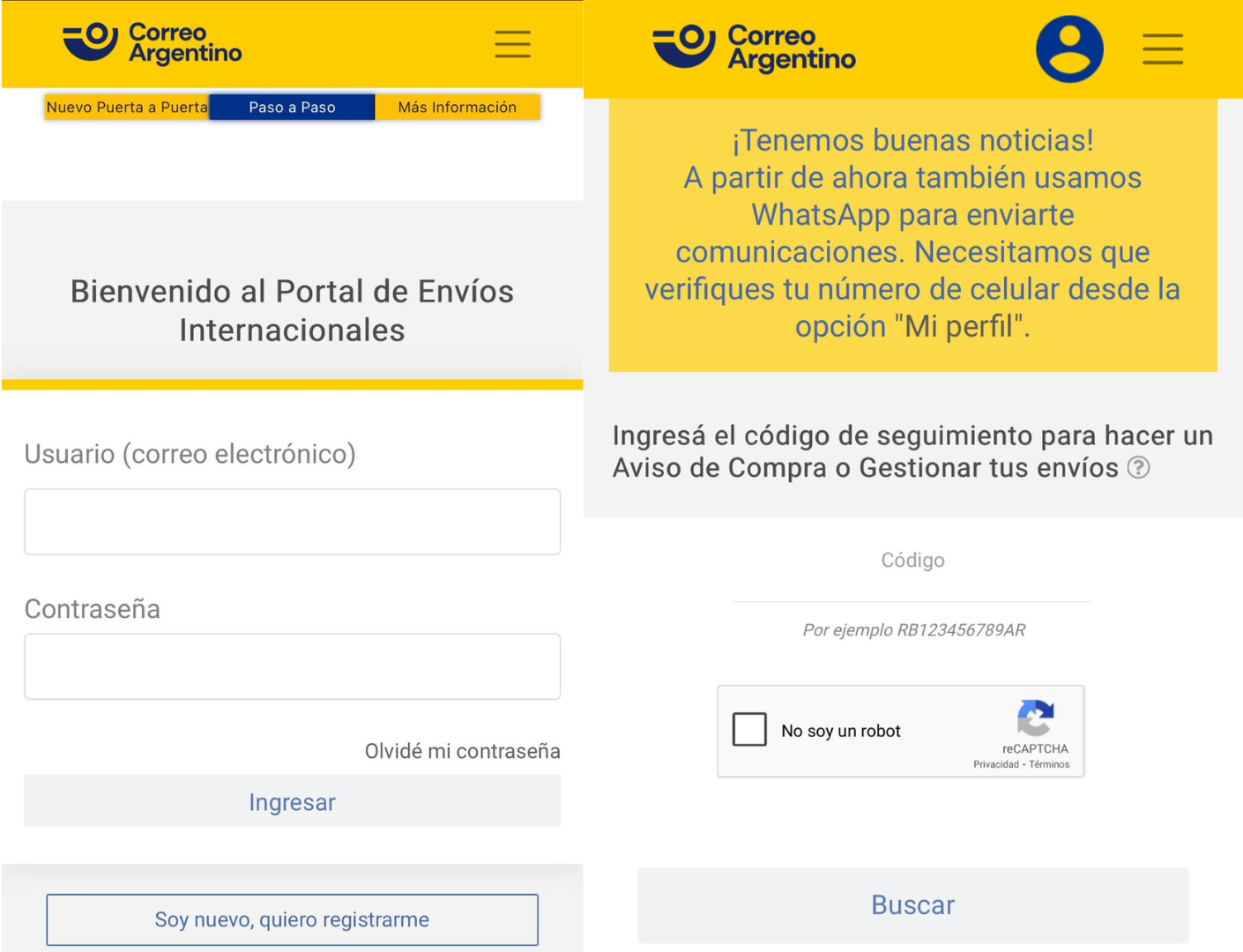 Ingresá a Correo Argentino - Envíos Internacionales e iniciá sesión con tu cuenta.